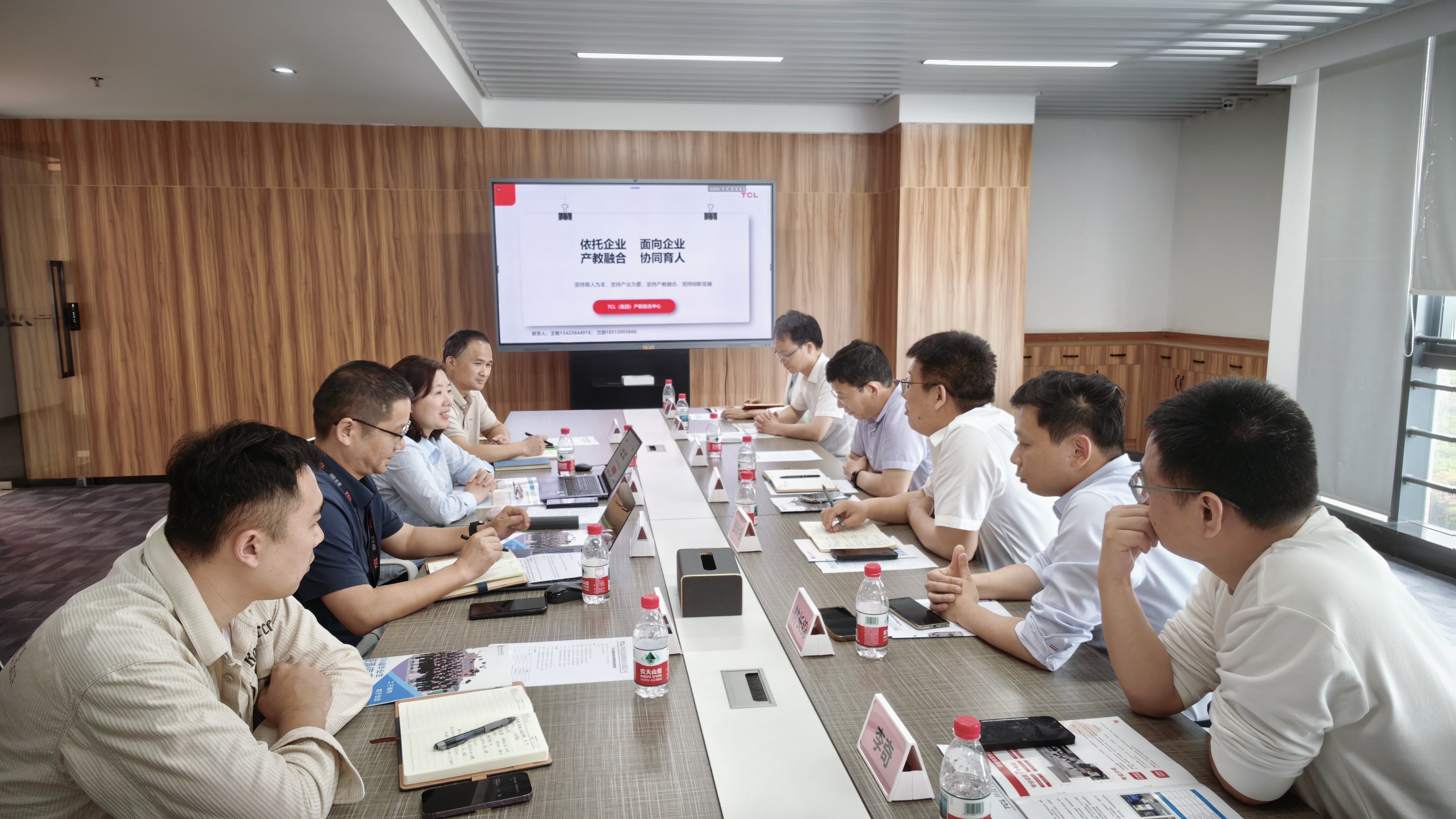 座谈会上,TCL科技集团人力资源部负责人代表企业对我校一行的到来表示热烈欢迎,详细介绍了企业的发展历程、企业文化、核心业务、核心研发成果及未来发展战略规划。张永强副校长对TCL科技集团的热情接待表示感谢,并介绍了我校的办学特色、人才培养举措以及2026届毕业生的基本情况。双方围绕产教融合、人才培养、就业等核心议题进行了深入探讨。TCL集团人力资源部负责人高度认可我校人才培养理念,并表达希望与我校能够建立长期稳定的合作关系,深化产教融合,探索共建实训基地、共设技能课程、订单式培养等合作模式,实现人才培养与企业需求同频共振。