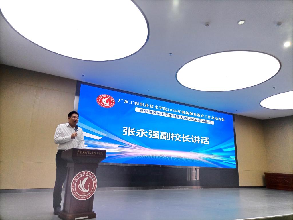 2026年4月23日下午,学校2025年创新创业教育工作总结表彰暨中国国际大学生创新大赛(2026)启动仪式在省职教城校区办公楼一楼报告厅举行。会议全面总结2025年创新创业教育工作成效,表彰先进典型,部署2026年重点任务,并正式启动2026年中国国际大学生创新大赛备赛工作。