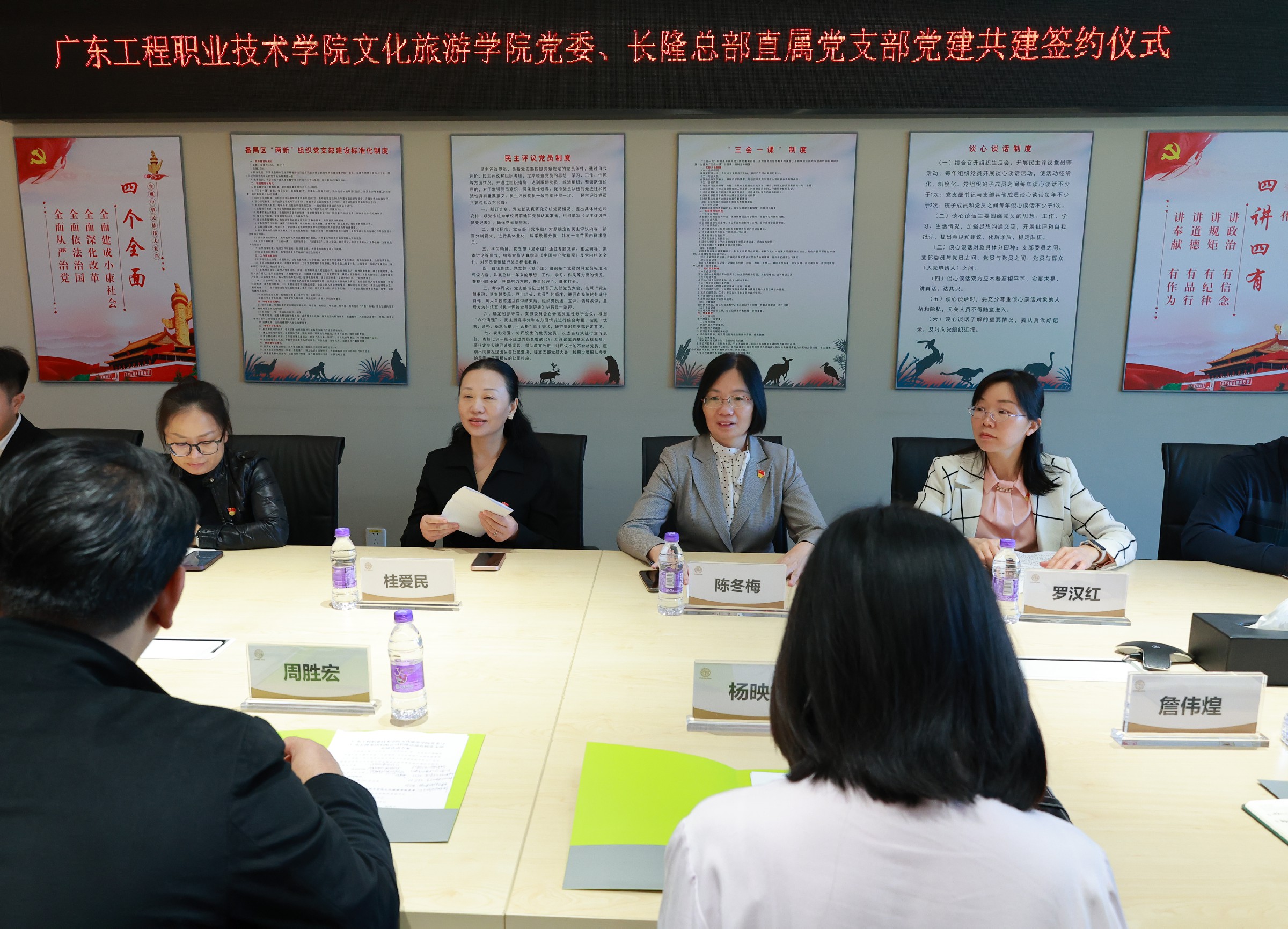 为进一步深化产教融合,推动校企协同育人,构建“资源共享、优势互补、互促共赢”的党建工作新格局,2025年11月5日上午,我校文化旅游学院党委与广东长隆集团有限公司总部直属党支部在广州长隆大厦901会议室举行党建共建签约仪式。学校党委副书记陈冬梅,文化旅游学院党委书记桂爱民、党委副书记罗汉红、副院长伍燕青等学院教师党员代表,与长隆集团党委委员、长隆总部直属党支部书记杨映婷,长隆集团党委委员黄淑娟、长隆总部直属党支部宣传委员周胜宏,长隆集团人力资源部招聘总监詹伟煌、人力资源部培训总监王乐等企业方代表共同出席活动。