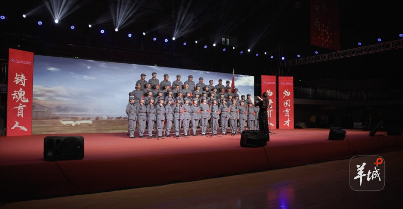 舞台灯光渐亮,马克思主义学院全体教师身着素色服装,庄重肃立。随着《到吴起镇》熟悉旋律响起,“锣鼓响,秧歌起……”教师们以饱满的热情和深厚的情感,再现了红军胜利到达吴起镇的历史场景。