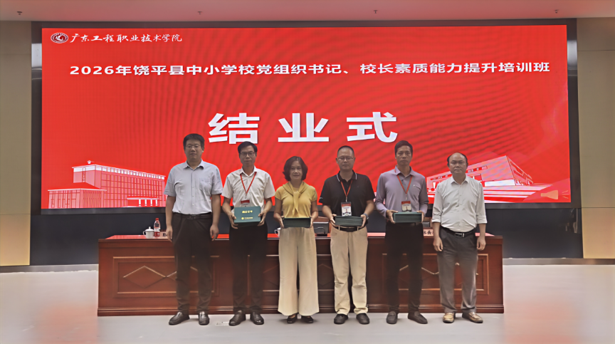 4月8日至11日,由广东工程职业技术学院联合饶平县教育局主办的2026年饶平县中小学校党组织书记、校长素质能力提升培训班在广东省职教城(清远)成功举办,该培训班自“双百行动”开展以来,持续3年深化实施培训了3期,不断提升饶平县基层教育工作骨干人员管理水平和业务水平。