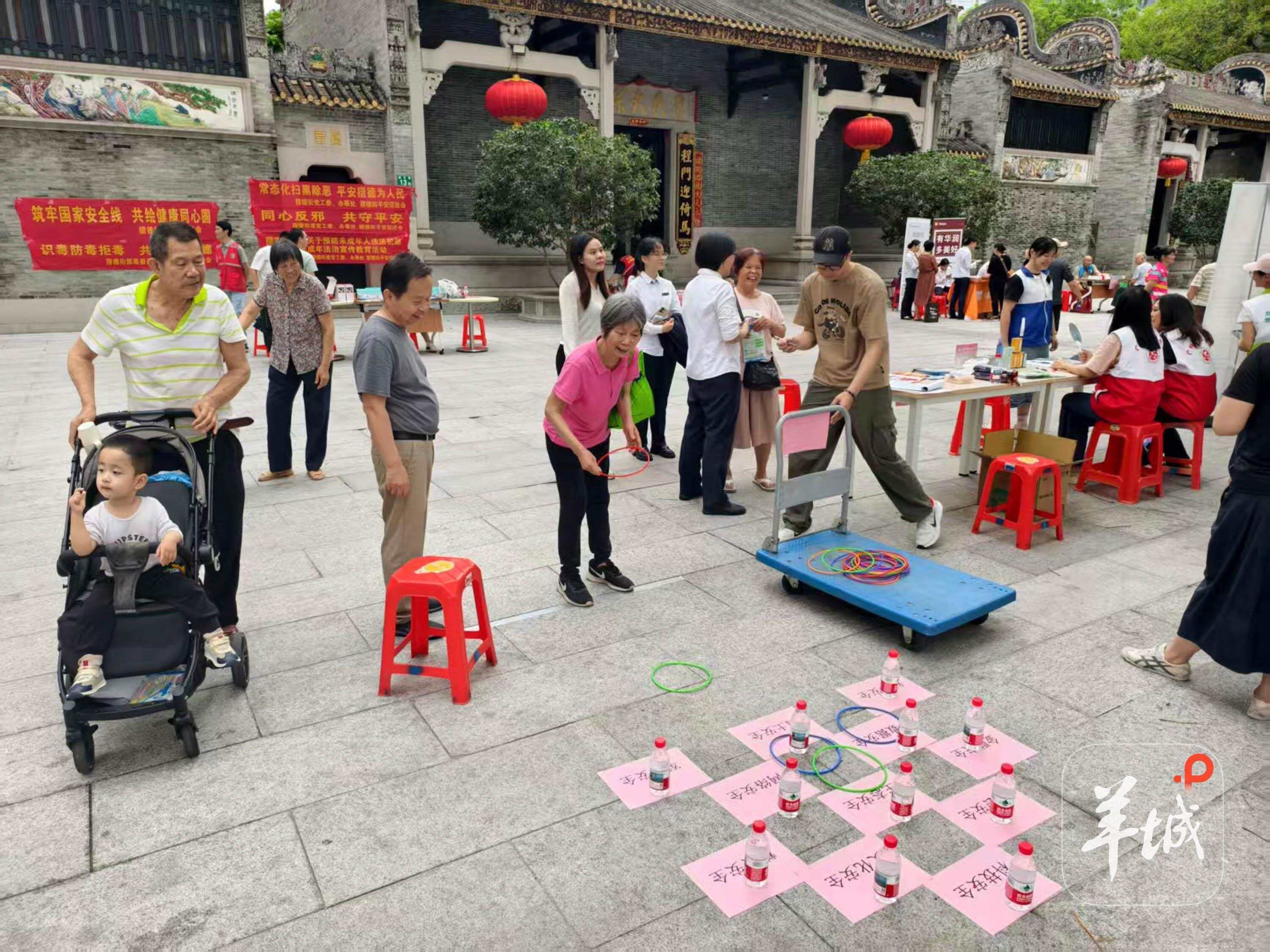 猎德街在猎德人家设置“安全主题市集”,以知识问答、趣味套圈等生动活泼的形式,提升居民安全意识与防范能力。