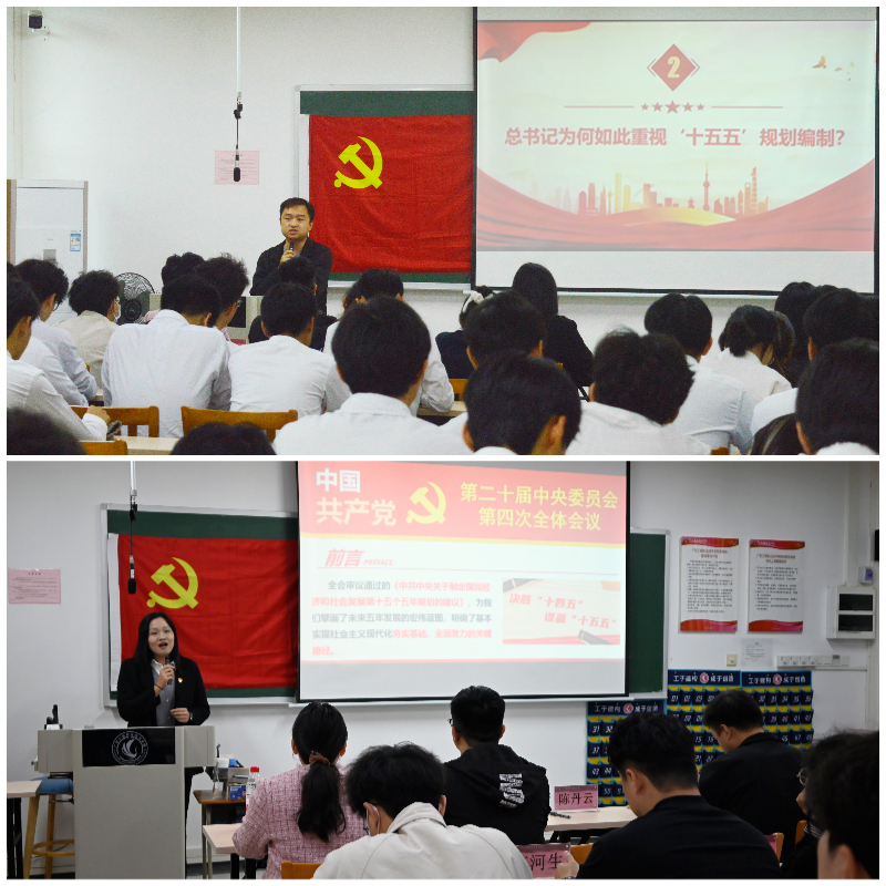 专题党课讲授环节,学生第一党支部书记庞云波以“深学笃行党的二十届四中全会精神 勇担 “十五五”现代化新使命”,他聚焦“推进文化自信自强,铸就社会主义文化新辉煌”的战略部署进行了详细解读。他指出,党的二十届四中全会精神深刻阐明了文化建设在强国建设、民族复兴征程中的基础性、引领性意义,特别强调要牢牢掌握党对意识形态工作领导权,广泛践行社会主义核心价值观。结合职业教育类型特色,他阐释了弘扬以工匠精神为核心的工业文化对于建设现代化产业体系、夯实实体经济根基的重要作用。他强调全会提出的繁荣发展文化事业和文化产业、增强中华文明传播力影响力等要求,为支部落实立德树人根本任务、推进“以文化人”提供了根本遵循。他勉励师生党员自觉成为先进文化的践行者、工匠精神的传承者,将文化自信融入专业技能培养与职业精神塑造的全过程,为培养担当民族复兴大任的时代新人贡献力量。学生第二党支部书记陈丹云以“深悟党的二十届四中全会精神实质 扛起“十五五”奋进新使命”为主题,她系统梳理了全会召开的重大背景与里程碑意义,深入解读了全会审议通过的《中共中央关于制定国民经济和社会发展第十五个五年规划的建议》。她主要围绕“十五五”时期我国发展的指导思想、经济社会发展主要目标及系列重点任务展开,并结合“十四五”时期的重大成就,深刻阐明了“十五五”规划作为基本实现社会主义现代化关键时期宏伟蓝图的核心要义。她强调师生党员要学深悟透,自觉将思想和行动统一到全会决策部署上来,切实把学习成果转化为扎根专业、锤炼技能、服务高质量发展的实际行动。