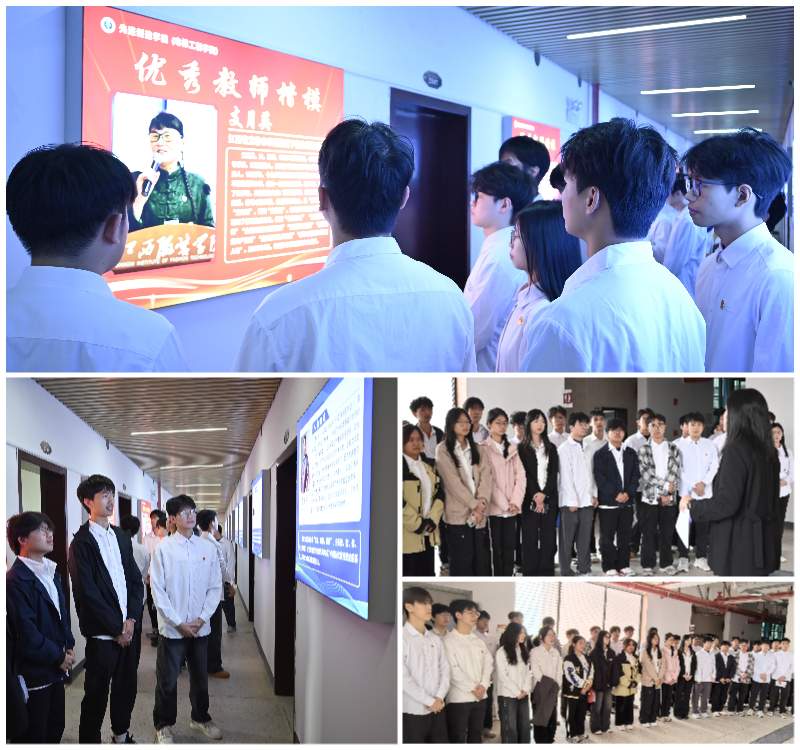 实地参观环节,在学生第一、第二党支部书记的带领下,支部师生参观了学院精心打造的系列“党建+”主题文化走廊,师生依次参观“党建+大力弘扬教育家精神长廊”、“党建+大国工匠走廊”、“党建+实训室文化走廊”等,在参观中领略胸怀天下、立德树人的师者风范,感悟精益求精、追求卓越的工匠精神,体验校园朝气蓬勃、奋发向上的精神面貌等。“这不仅仅是一次理论宣讲,更是一次青春活力的沉浸式体验活动,这对于未来的职业规划和成长路径有了更清晰的认识。”支部学生党员刘学丰在参观后表示。