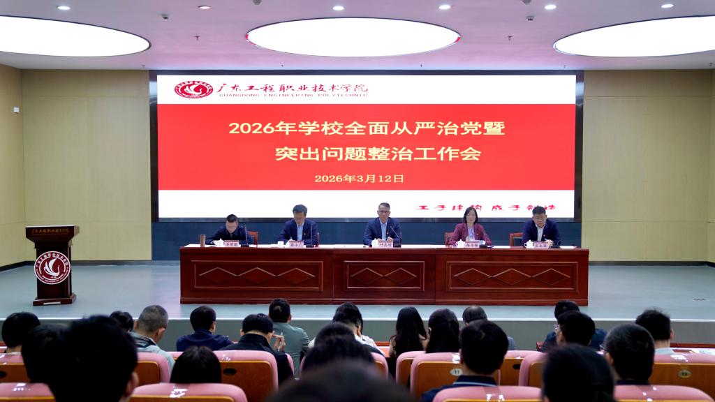 3月12日上午,学校在广州校区办公楼511室与省职教城校区办公楼报告厅召开2026年全面从严治党工作暨突出问题整治工作会议,总结2025年学校全面从严治党工作,部署安排2026年工作,布置突出问题整治工作。全体校领导、党委委员、纪委委员,中层干部,党支部书记,纪检委员、组织员、特约监督员参会。学校党委副书记陈冬梅主持会议。