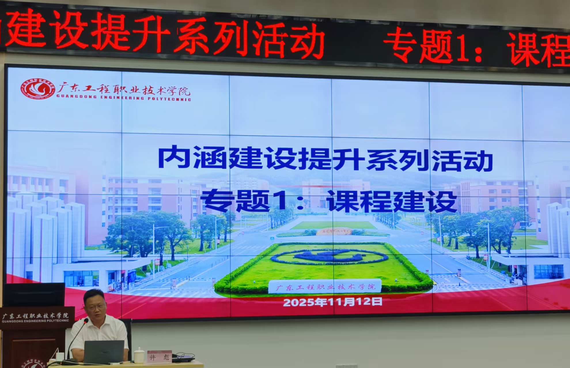 学校副校长吴志敏在总结讲话中指出,许彪教授的讲座内容翔实、启发性强,为学校课程建设提供了重要参考。他围绕学校发展全局,对下一阶段工作提出三项核心要求:一是全体教师要进一步强化“课程建设永远在路上”的责任意识,化理念为行动,沉心静气、久久为功,扎实推进每一门课程的内涵提升;二是各二级学院要立足专业群发展,理顺“说清楚—建明白—做扎实”的建设路径,全面提升专业核心竞争力与行业话语权;三是以“院长说专业群”“教师说课比赛”等系列活动为契机,系统锤炼教师教学基本功,以最佳状态迎接办学能力评估。吴校长强调,“十五五”是学校实现跨越式发展的战略机遇期,每一位教师都是学校品牌的建设者与代言人,唯有全员投入、持续发力,才能在广东乃至全国职业教育新格局中赢得一席之地。