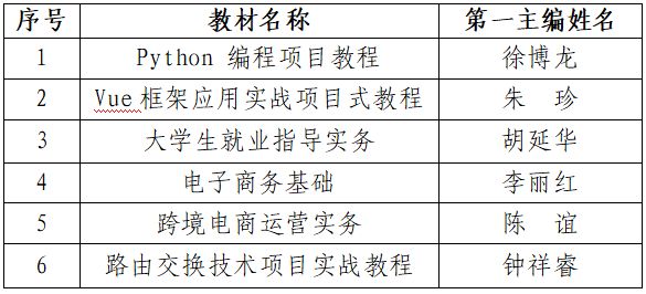 近日,广东省教育厅正式公示了《关于第二批“十四五”广东省职业教育规划教材拟入选名单》,我校教师主编的6部教材成功入选,充分彰显了学校教学研究与教材建设领域的扎实底蕴与过硬实力,是我校深化教育教学改革、扎实推进高质量教材建设取得的新突破。