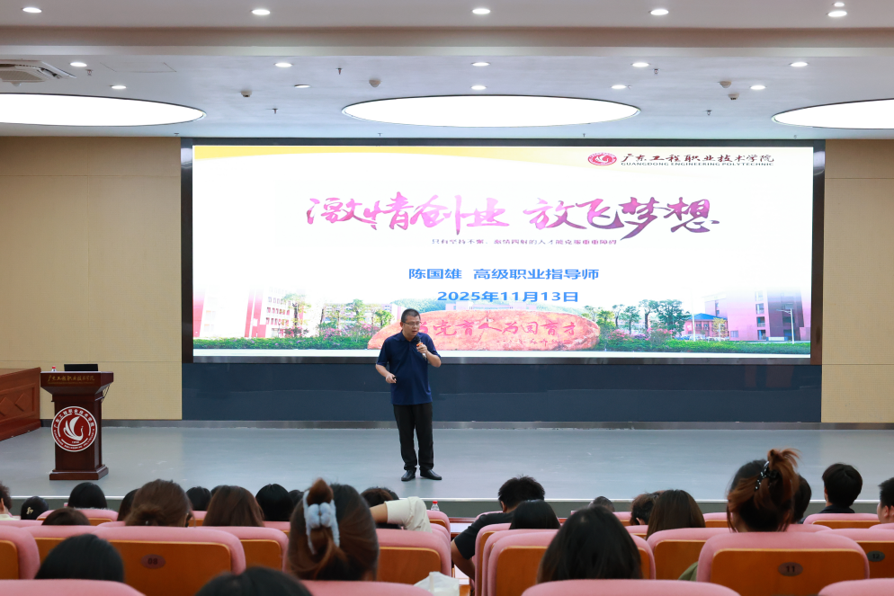 宣讲会采取“企业宣讲+经验分享+政策解读+专家指导”四位一体模式,系统开展就业创业指导服务。天安智谷科技发展集团人才平台运营总监黄楚怡、广东华饮食品供应链管理有限公司人力行政经理戚美兰分别介绍企业发展情况、企业文化及人才引进计划。先进制造学院(电梯工程学院)学生李牧欣结合个人经历分享创业实践体会,展现青年学生创新创业风貌。在政策宣讲环节,清城区人社局工作人员围绕清远市高校毕业生就业补贴、创业扶持等政策“大礼包”进行详细解读,帮助学生全面掌握本地就业创业支持措施。文化旅游学院副院长陈国雄以《激情创业 放飞梦想》为题,开展了一场专题讲座,内容涵盖创业动因、实施路径、政策运用等多个方面,为学生们提供了系统性的创业辅导。