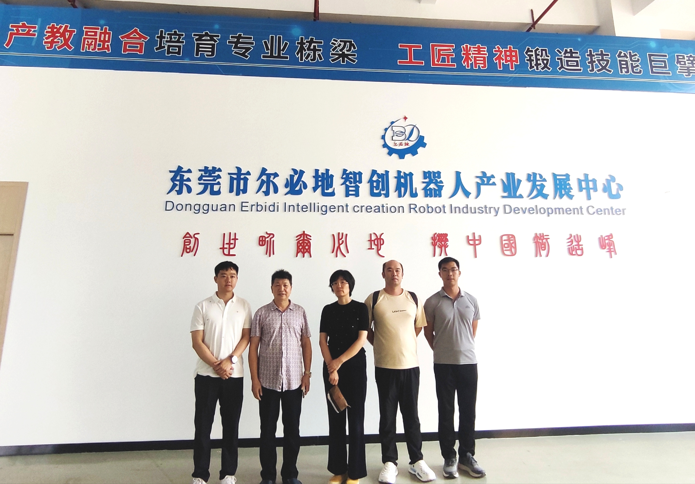 随后,考察组前往东莞市尔必地机器人有限公司。在企业机器人产业学院执行院长胡坚陪同下,考察组实地参观公司生产制造中心、机器人装配焊接实践中心、专业实习基地等,全面了解企业技术前沿、产业实力与精准人才需求方向。座谈会上,双方就校企协同育人、实习就业一体化、产教融合项目共建等事项深入交流,为后续深度合作奠定坚实基础。