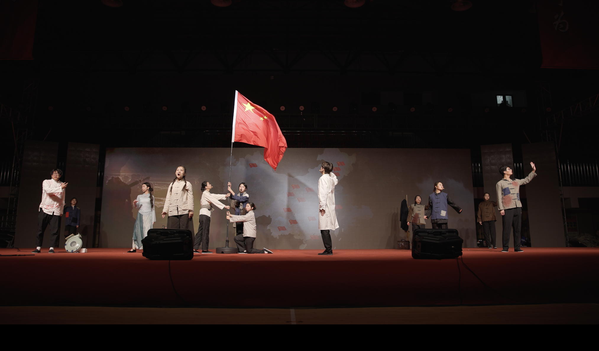 展演尾声,与会师生共同齐声合唱《国际歌》等经典红色歌曲,展演在观众热烈持久的掌声中圆满落幕。