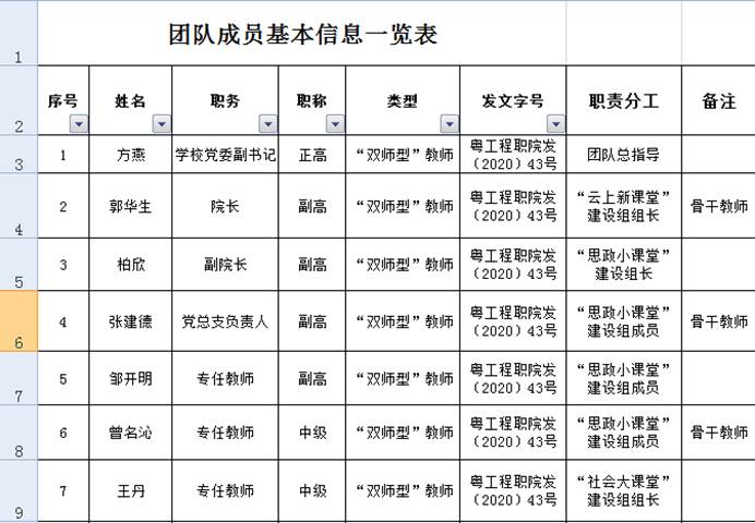 "概论"课省级优秀教学团队成员基本信息
