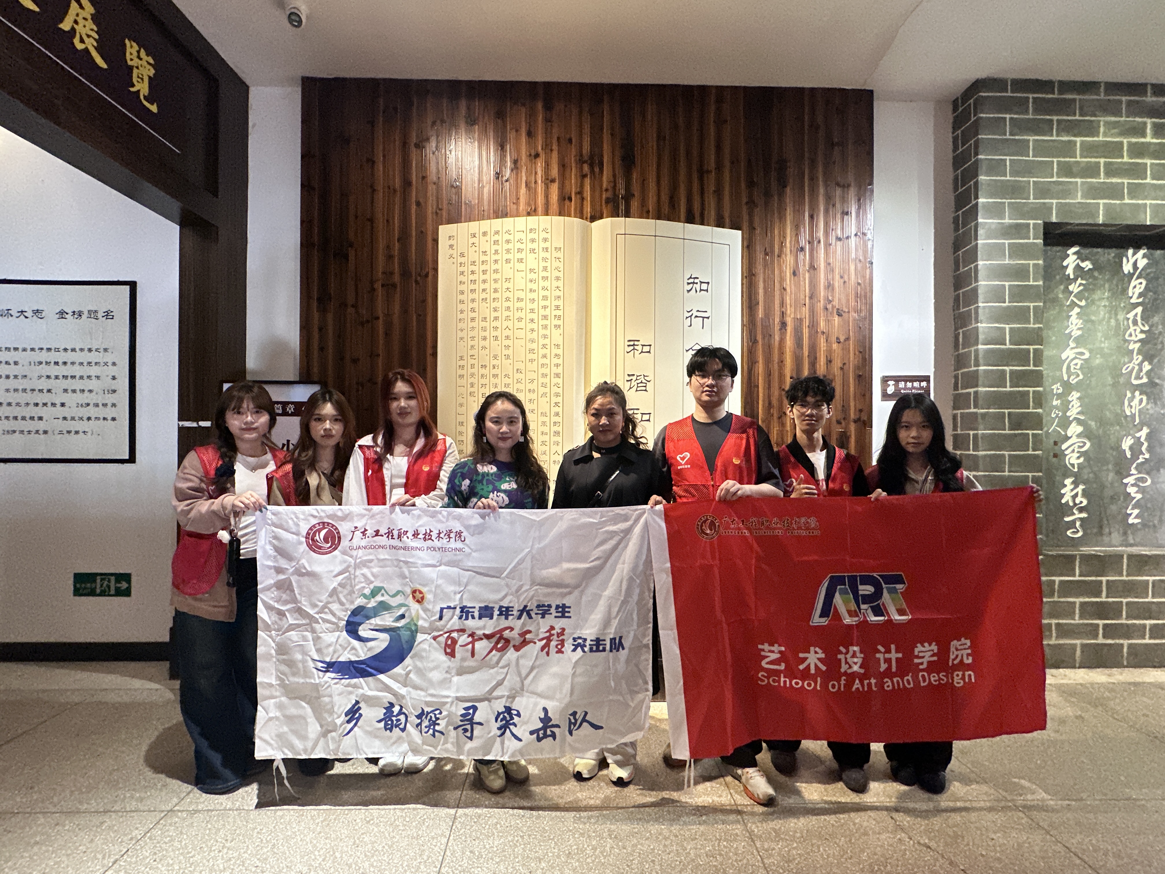随后,师生前往王阳明纪念馆——河源市反腐倡廉历史教育基地,开展廉洁教育主题学习。据悉,该纪念馆以“为民、务实、清廉”为主题,以王阳明“知行合一”思想精髓为主线,于2014年11月正式挂牌“河源市反腐倡廉历史教育基地”。在讲解员引导下,师生有序参观纪念馆,重点学习馆内两个专题展内容,全方位领悟王阳明“致良知”“知行合一”思想中的廉洁内涵,深入了解王阳明跌宕起伏的人生历程和监察执法实践。通过图文说明、实物展示等载体,师生们系统学习王阳明一生的坎坷经历,重点研读其在监察执法、治理地方过程中的务实举措与廉洁作风,深刻体会其“知行合一”思想在廉政实践中的生动体现,感悟其坚守初心、秉公履职的责任担当。