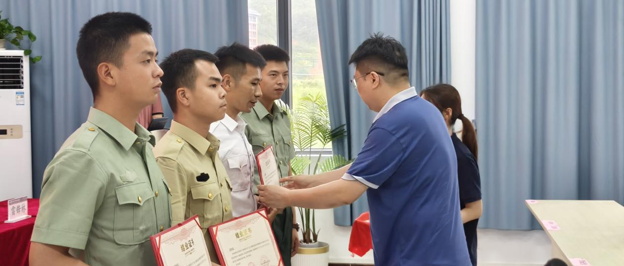 随后举行的结业仪式上,出席的嘉宾有广东工程职业技术学院体育健康学院党委书记邱志远、清远市退役军人事务局移交安置与就业创业科科长雷锋林,在结业仪式上为培训合格的退役士兵颁发结业证书。证书不仅是对学员学习成果的认可,更是其迈向新职业阶段的“通行证”。