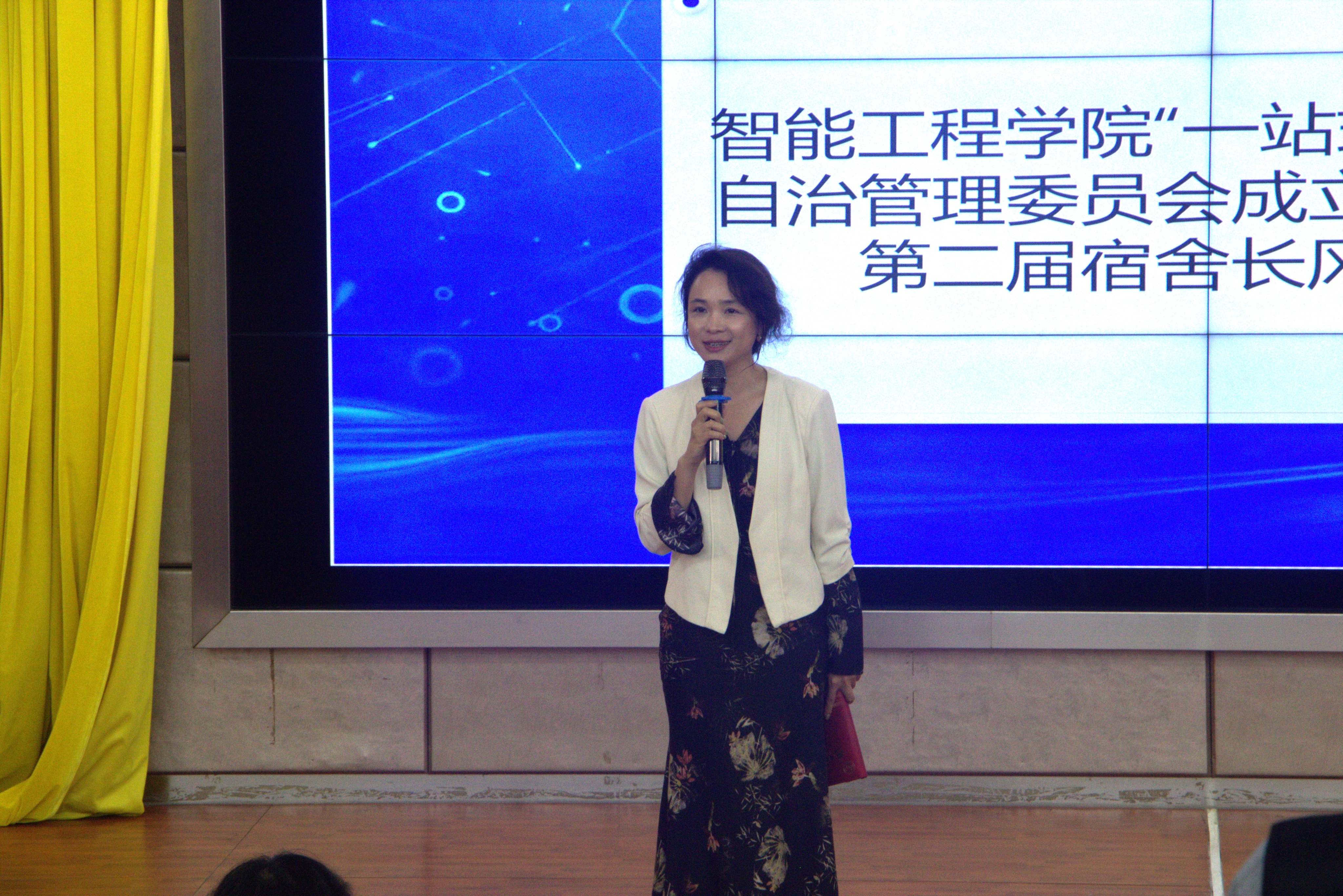 吴丽清致辞中指出,自管会的成立,是学院下沉育人力量、扎根服务一线的重要举措,更是 “智学笃信” 党建品牌在学生社区落地生根的生动实践。她寄语全体自管会骨干:一是以笃信铸魂,把理想信念融入社区建设,打造有信仰的成长共同体;二是以善治强能,把工作阵地搬到楼道、服务窗口设在宿舍,推动“零旷课、零晚归、零诈骗、零违纪”从目标变成日常;三是以和合聚力,以文明宿舍创建为抓手,涵养向上向善的“舍风、班风、学风”,让每一位同学在集体中成长、在共进中成才。